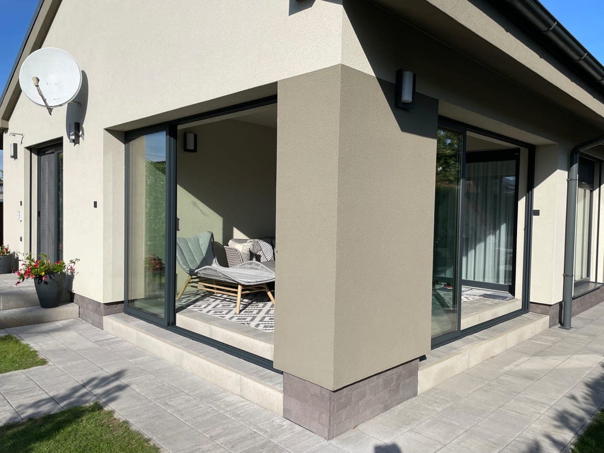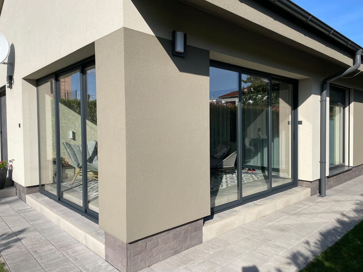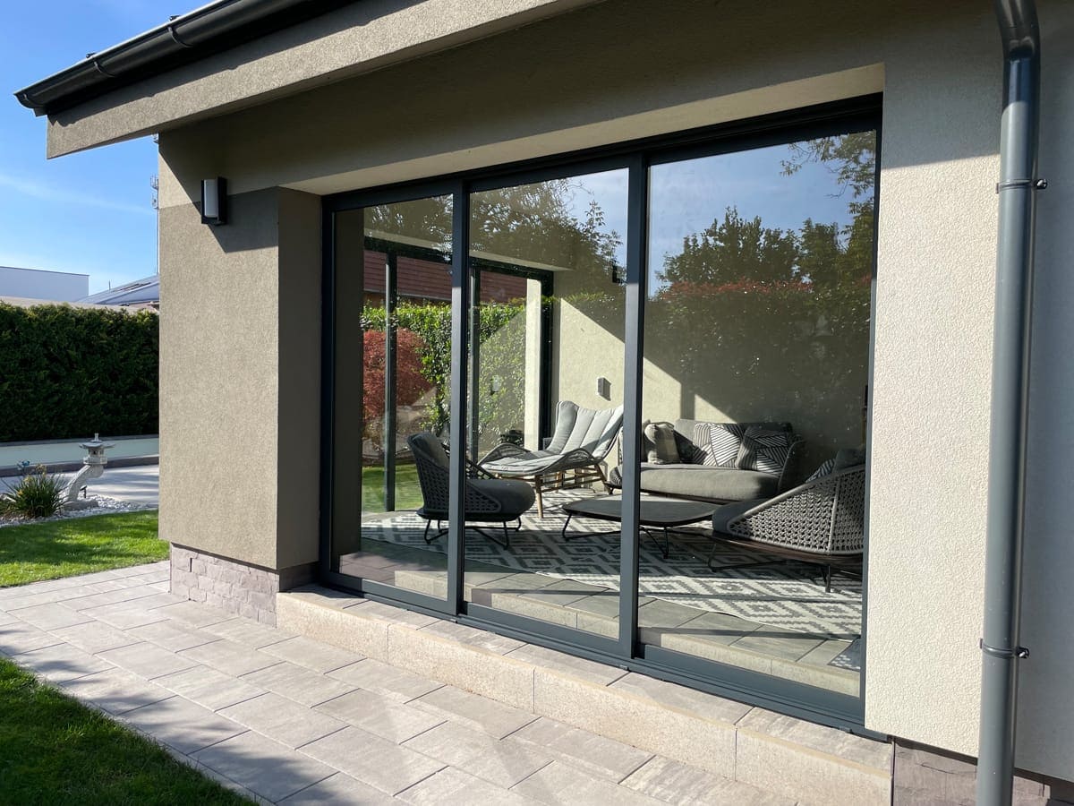 Při výrobě zasklení montujeme posuvný systém, který je možné otevírat posunutím do stran, přičemž jednotlivá křídla zapadají za sebe. Tento posuvný systém slouží také pro větrání zaskleného prostoru.
